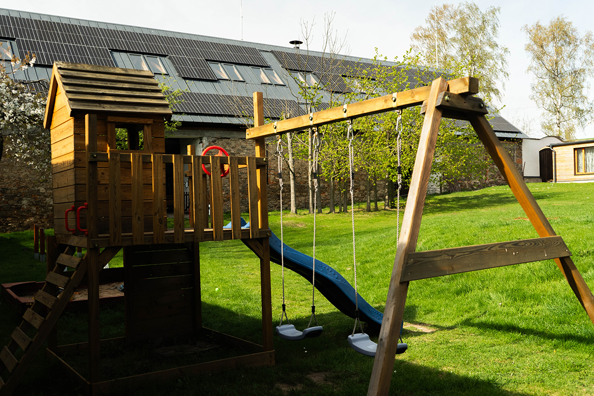 Every parent who has tried to find a hotel or guesthouse suitable for families with children knows how difficult it is today. The spacious courtyard (3500 m2) with parkland is equipped with a children’s playground, and thanks to its seclusion, children are completely safe. The hotel restaurant, café and outdoor terrace have a direct view of the Courtyard, so your children will be under control. As there are no roads (apart from a purpose built road leading only to the hotel) or buildings around the hotel, there is no danger to children “let loose” in the immediate area.