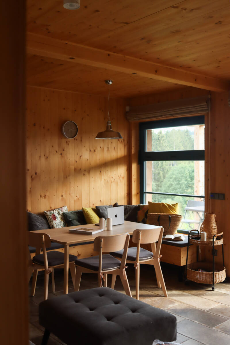 Pro vyznavače ubytování v soukromí má nově hotel k dispozici tři nově vybudované luxusní chaty ve skandinávském stylu, které se nachází v blízkosti hotelu. A vy tak můžete využít veškerých doprovodných služeb Líšenského Dvora, včetně stravy. Chalety nabízí hostům ubytování s krásnými výhledy do okolních lesů. Každá chata má kapacitu 6 lůžek, vybavenou kuchyňku, jídelní kout, moderní koupelnu se sprchovým koutem, krb a zastřešenou terasu s posezením. Využít můžete venkovní ohniště nebo si zapůjčit gril. Spoustu legrace si užijete v dřevěném koupacím sudu, který je k dispozici hostům ubytovaným právě v těchto chatách. A kdo by snad zatoužil po dobrém pokrmu nebo nápoji, může využít služeb hotelu.